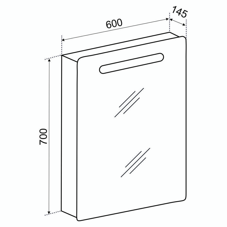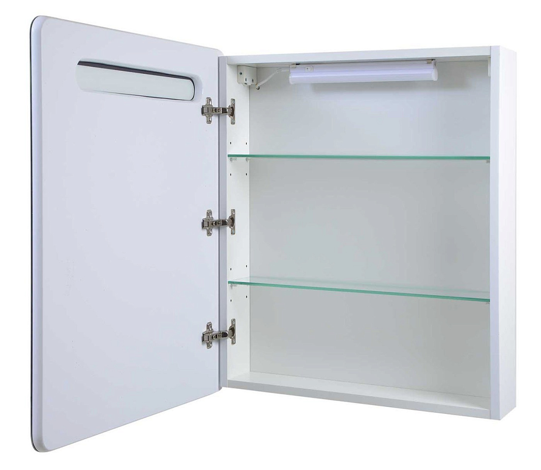 еркальный шкаф со светодиодной подсветкой. Корпус выполнен из МДФ покрытое пленкой ПВХ. Петли с доводчиками с левой стороны. Внутри шкафа две стеклянные полочки. Поставляется в собраном виде.