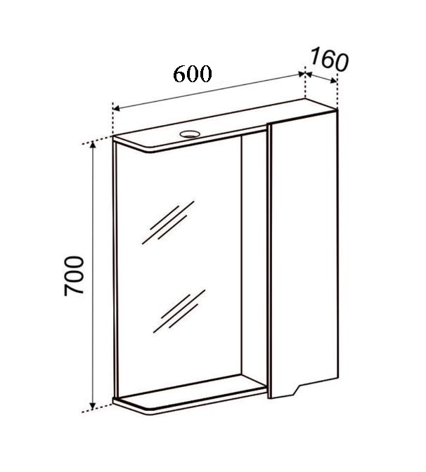 Зеркало-шкаф EMMY Агата 60 с подсветкой, правое купить недорого в интернет-магазине «ГЕБОСАН»