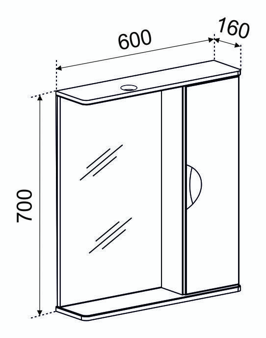 Зеркало-шкаф EMMY Милли 60 с подветкой, правое купить недорого в интернет-магазине «ГЕБОСАН»