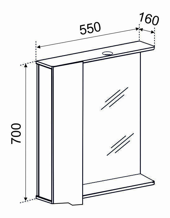 Зеркало-шкаф EMMY Агата 55 с подсветкой, левое купить недорого в интернет-магазине «ГЕБОСАН»