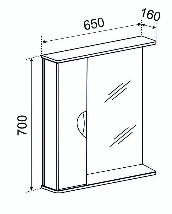 Зеркало-шкаф EMMY Милли 65 универсальное, без подсветки купить недорого в интернет-магазине «ГЕБОСАН»
