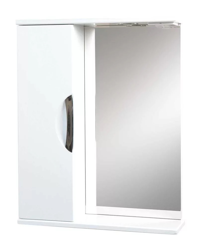 с полкой, с подсветкой, шкафчик слева; механический выключатель