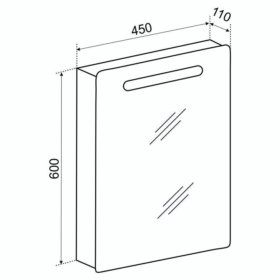 еркальный шкаф со светодиодной подсветкой. Корпус выполнен из МДФ покрытое пленкой ПВХ. Петли с доводчиками с левой стороны. Внутри шкафа две стеклянные полочки. Поставляется в собраном виде.
