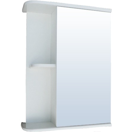 Зеркальный шкаф без света. Внешнии полки с левой стороны. Корпус ЛДСП. Фасад зеркальный. Внутри шкафа две полки. Поставляется в собранном виде.