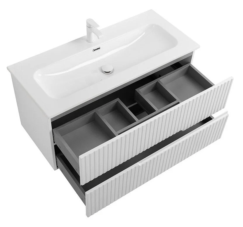 Тумба под раковину Cezares Duet-N-1000-2C-SO-FBS-P, 100 см, подвесная, ясень белый софт