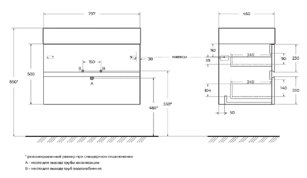 Тумба под раковину Cezares Molveno 46-80-2C-SO-BET, 80 см, подвесная, beton