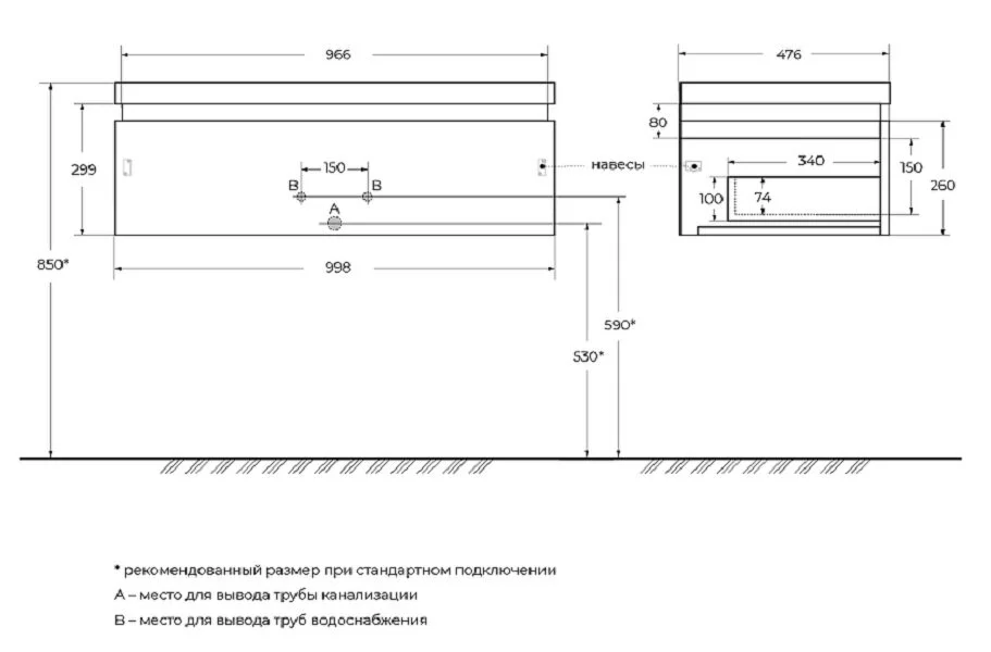 Тумба под раковину Cezares Slider-1000-1C-SO-RT-P, 100 см, подвесная, дуб тангент