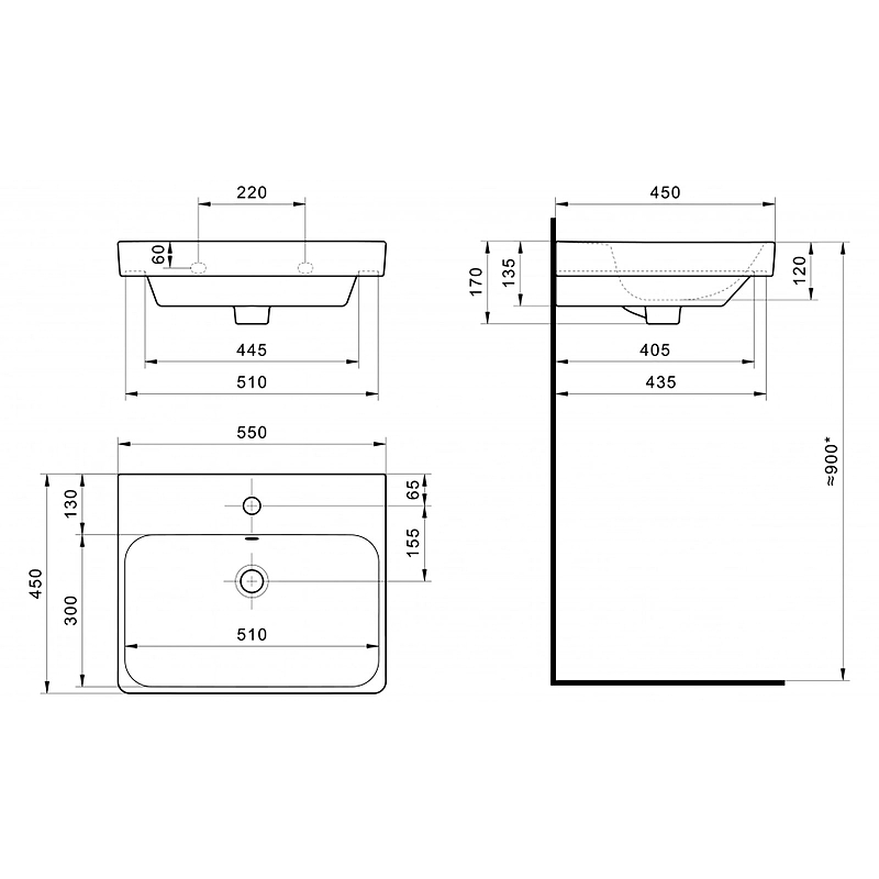 Тумба с раковиной Misty Адриана 55 УТ000010339 подвесная Дуб Вотан Белый