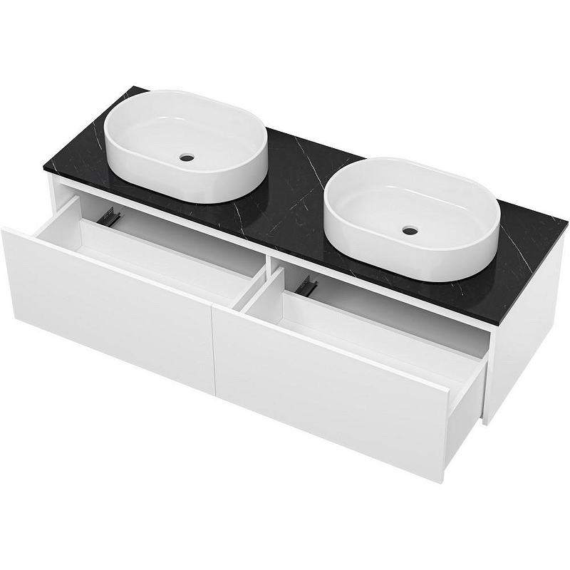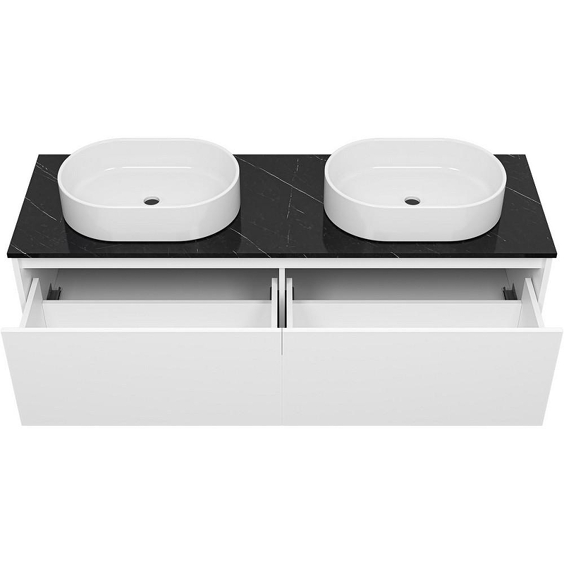 Тумба с раковиной Misty Виста 150 УТ000025084 подвесная Белая матовая Черный мрамор
