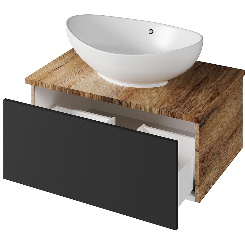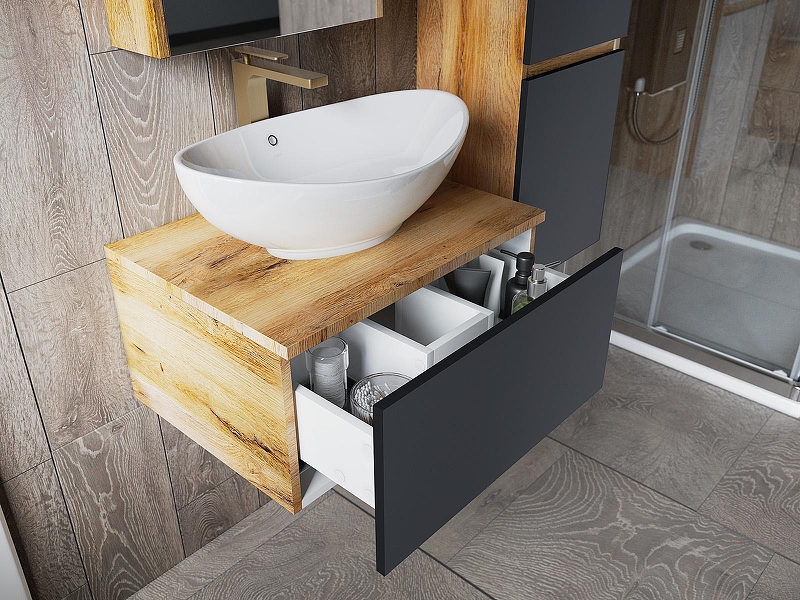 Тумба с раковиной Misty Ива 70 УТ000014118 подвесная Графит Дуб Вотан