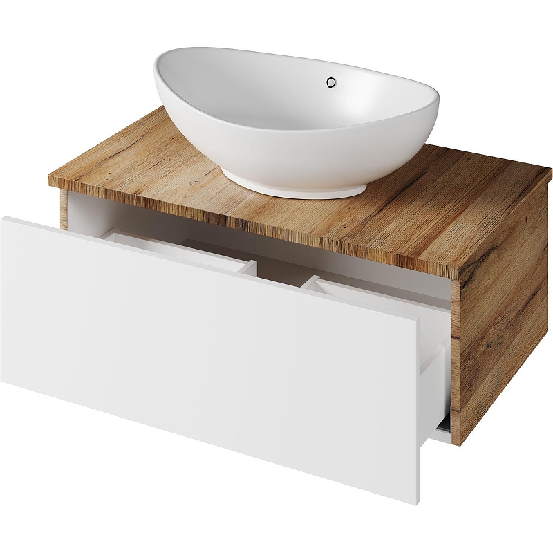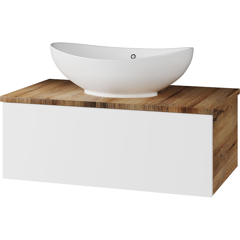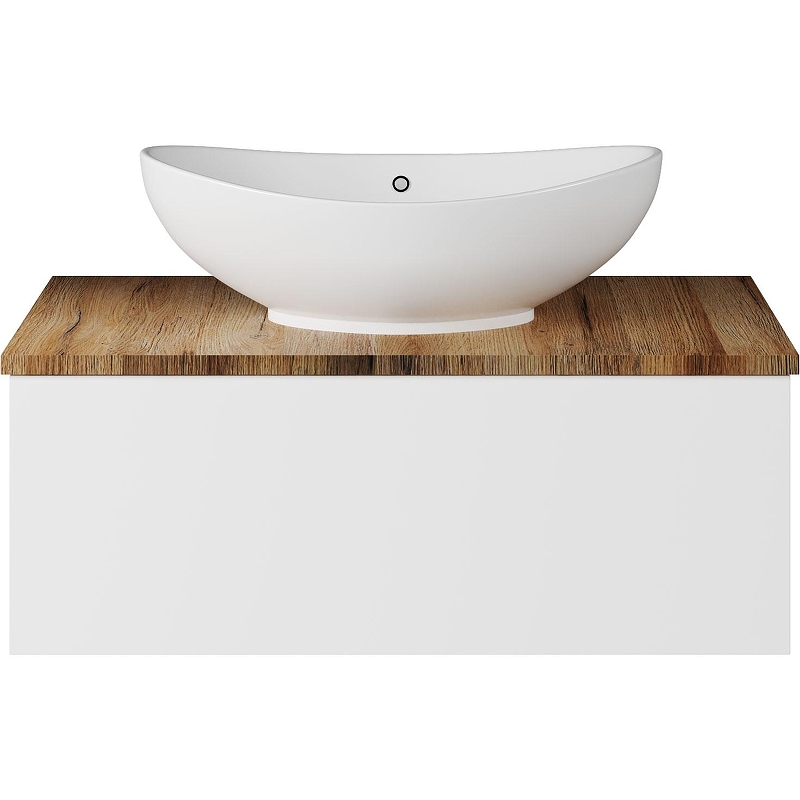 Тумба с раковиной Misty Ива 80 УТ000008502 подвесная Белая Дуб Вотан