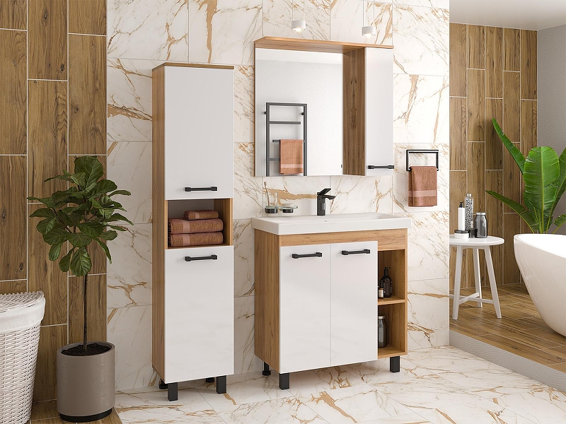Тумба с раковиной Misty Крафт 80 УТ000013344 Белая Дуб Крафт золотой