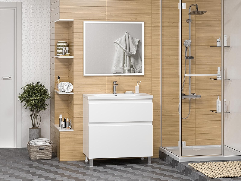 Тумба с раковиной Misty Лаки 80 УТ000024249 Белая