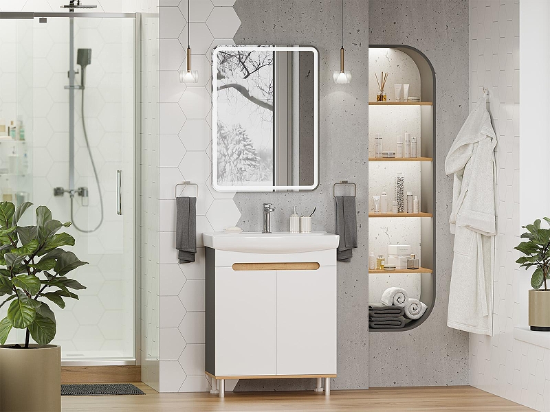 Тумба с раковиной Misty Сканди 70 УТ000023177 Белая Дуб крафт золотой Антрацит
