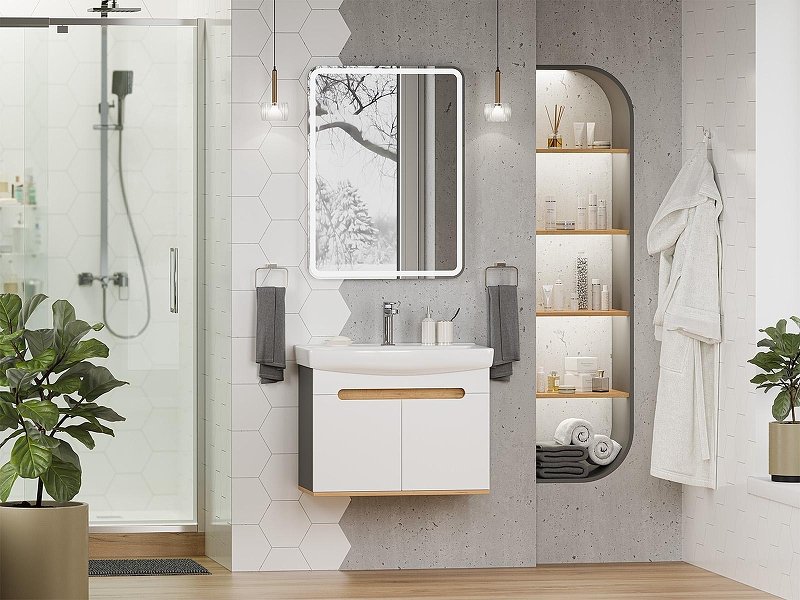 Тумба с раковиной Misty Сканди 70 УТ000023183 подвесная Белая Дуб крафт золотой Антрацит