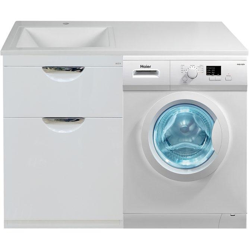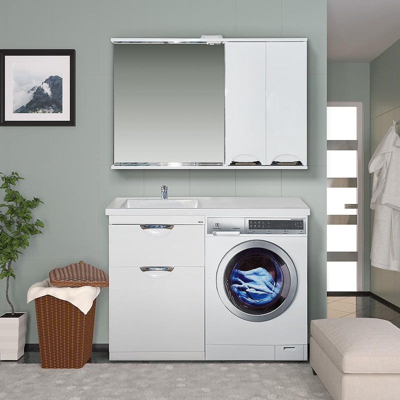 Тумба с раковиной Misty Куба 120 L УТ000005574 с бельевой корзиной Белая