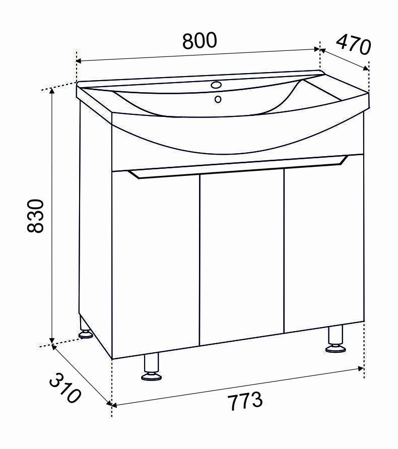 Тумба с раковиной Emmy Агата 80 с раковиной Балтика 80
