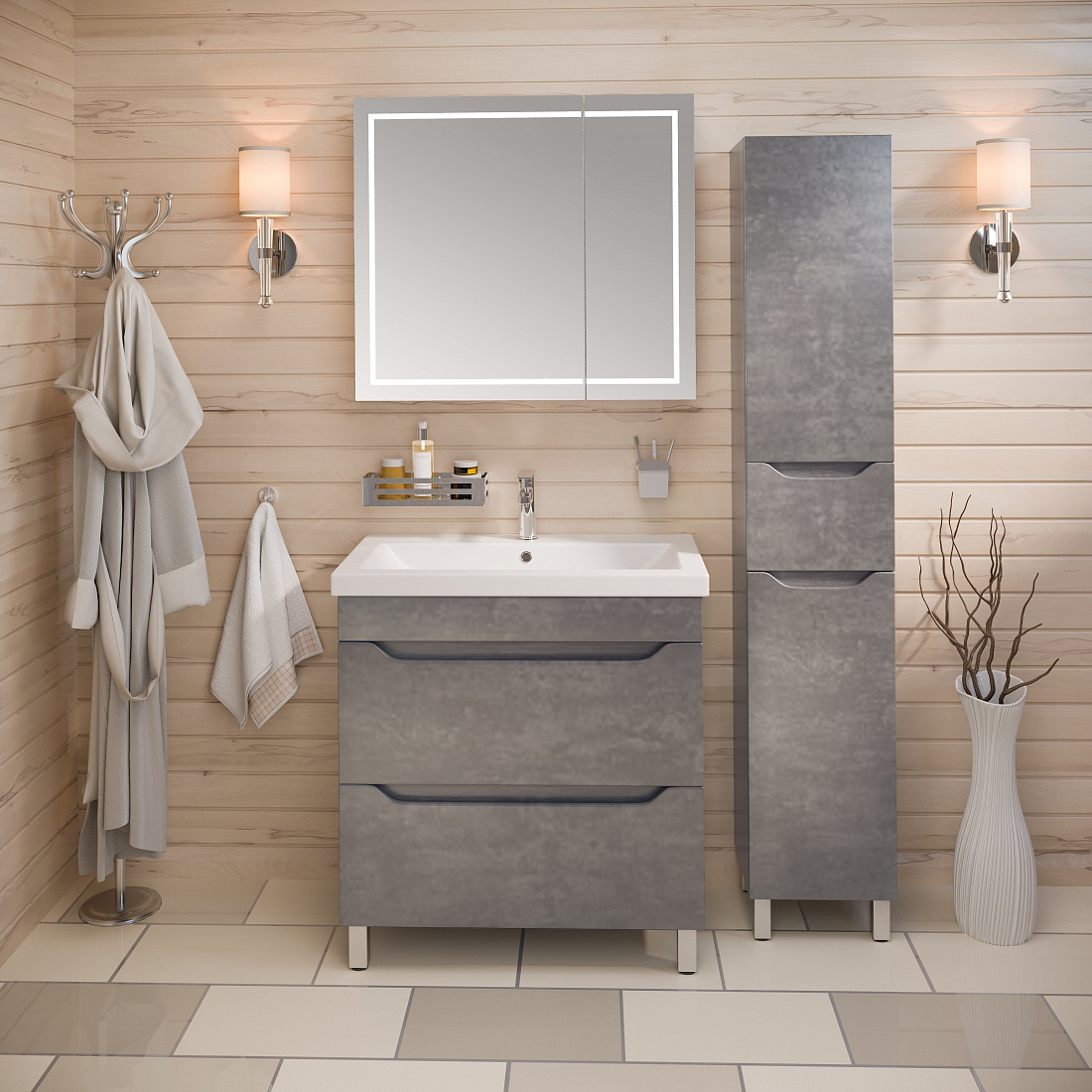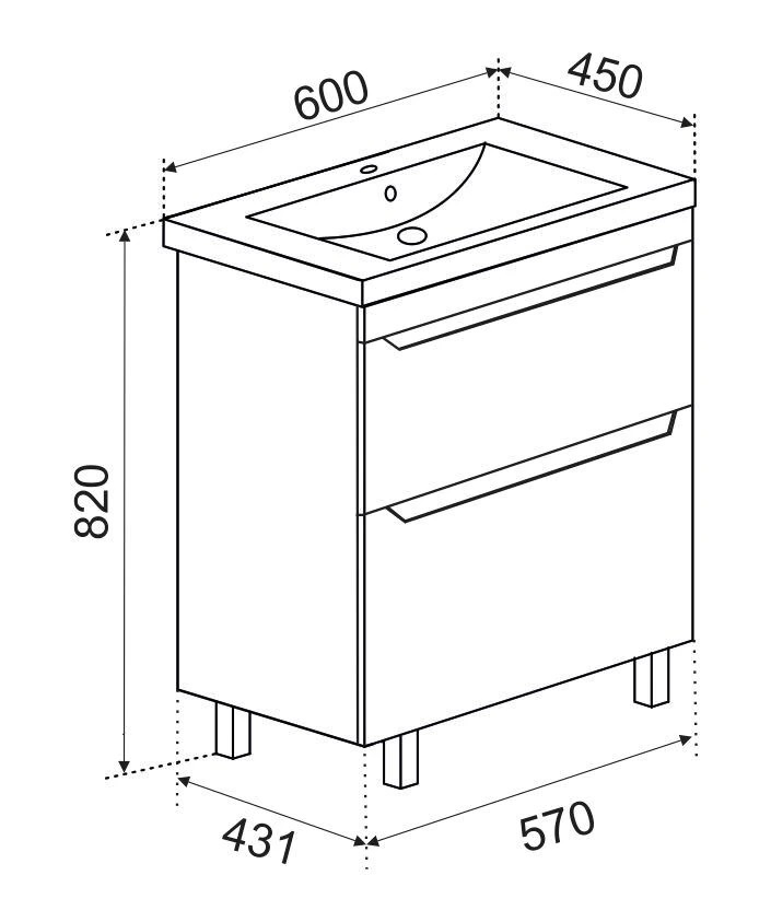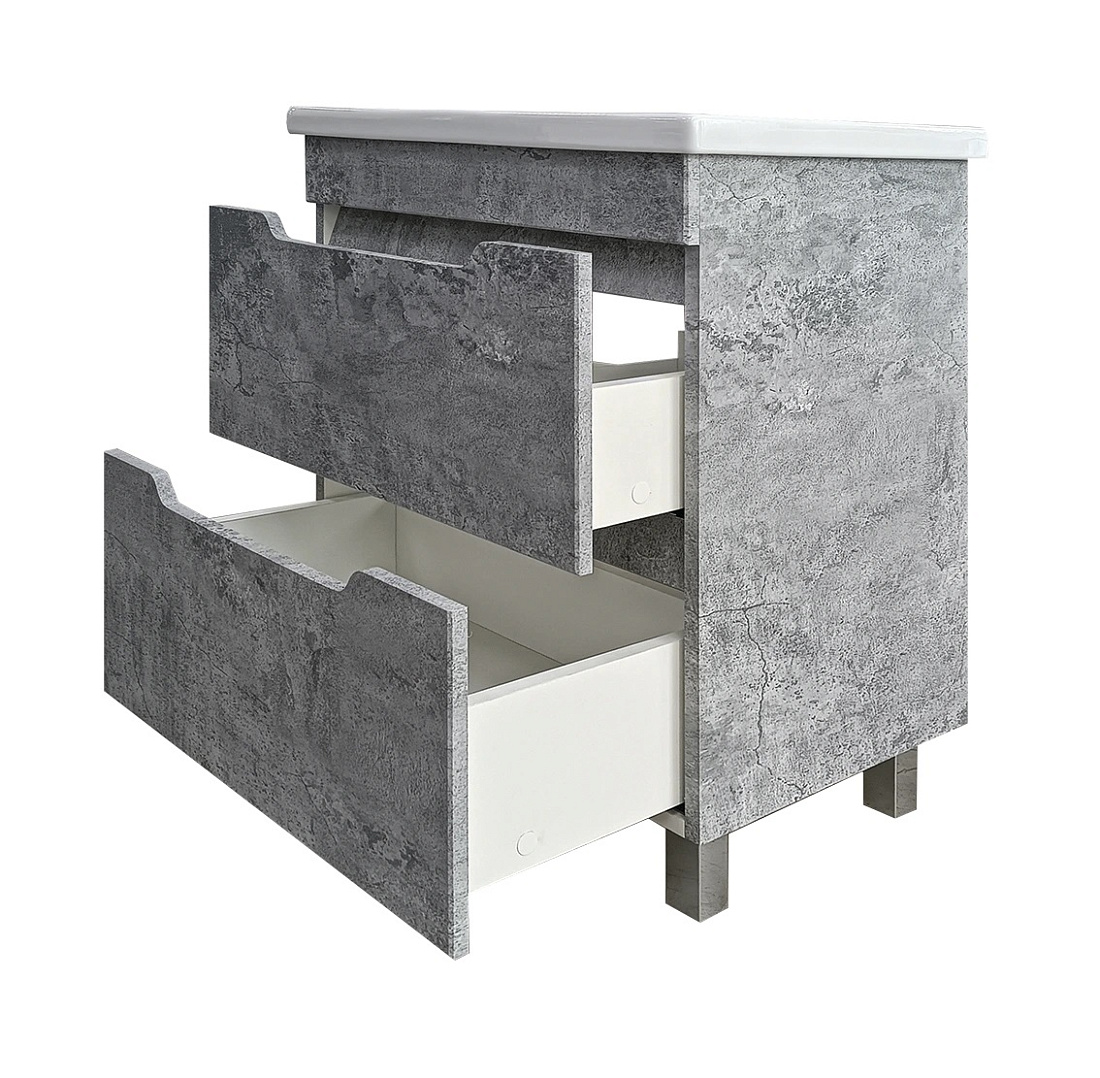 Тумба подвесная с умывальником с 2 ящиками. Корпус и фасад выполнен из МДФ с пленкой ПВХ. На ящиках направляющие скрытого монтажа. Поставляется в собраном виде.