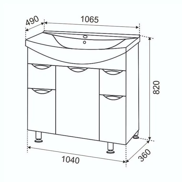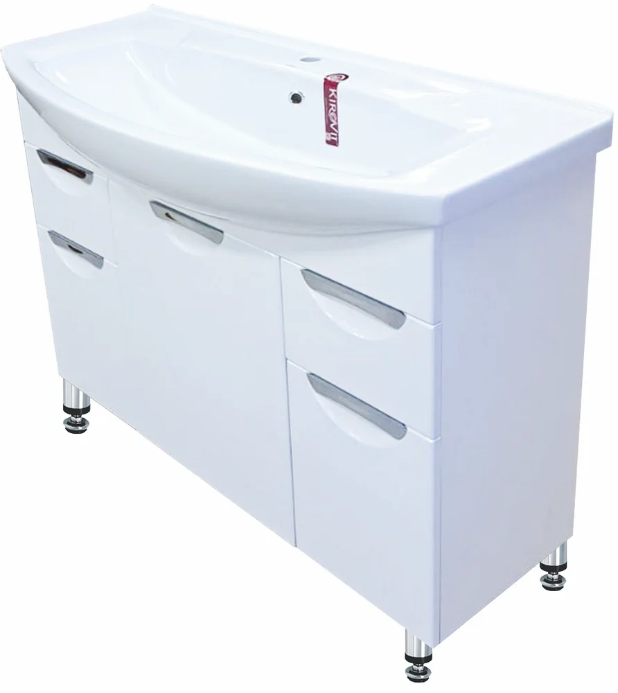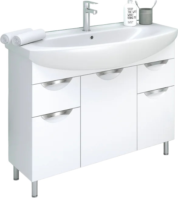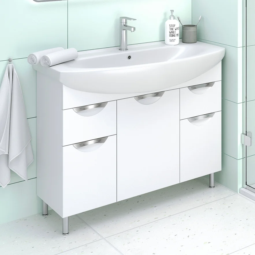 Тумба с раковиной Emmy Милли 105 напольная, 2 ящика, 3 двери, белая (раковина Элеганс 105) купить по низкой цене в интернет-магазине «ГЕБОСАН»