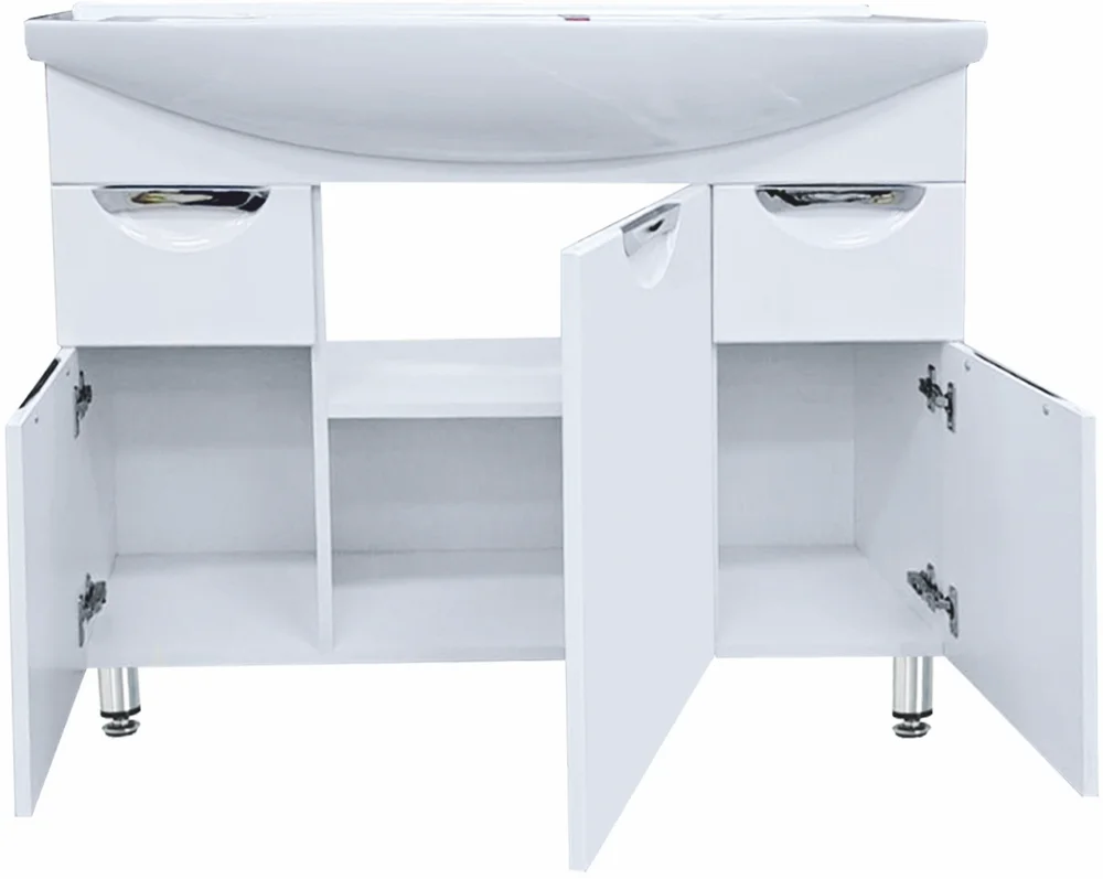 Тумба с раковиной Emmy Милли 105 напольная, 2 ящика, 3 двери, белая (раковина Элеганс 105)