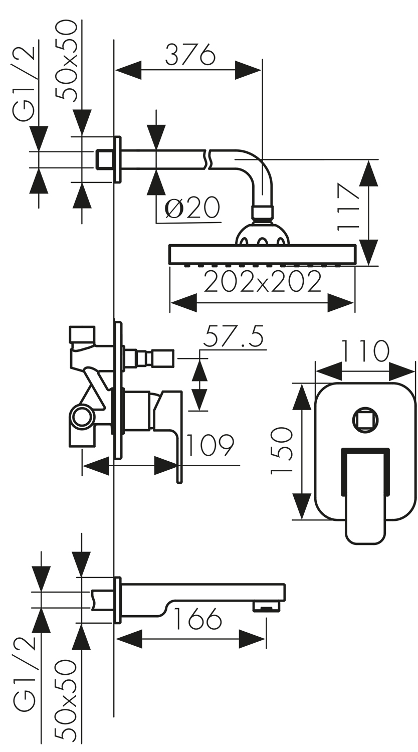 Душевая система KAISER Sonat 34322 скрытый монтаж, верх. душ+излив