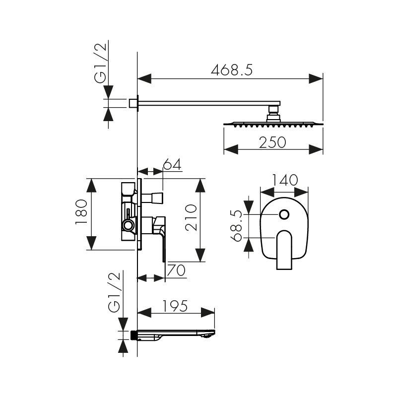 Смеситель KAISER Liniear Душевая система с изливом скрытого монтажа (стац. лейка 250х250) /Хром