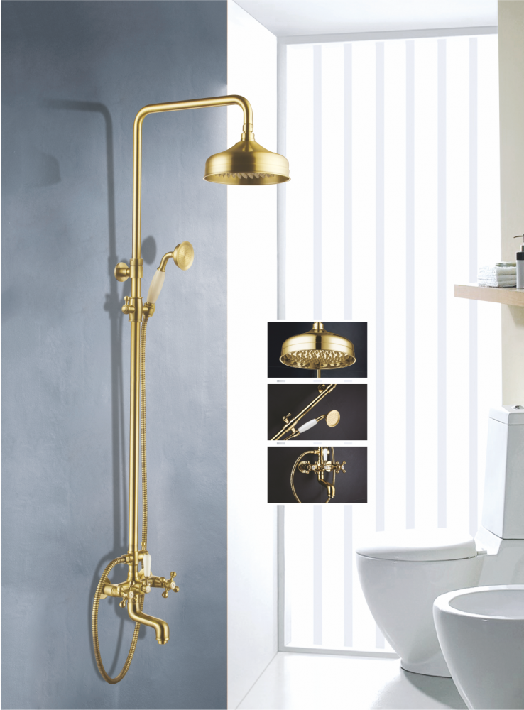 Душевая система с тропическим душем и двухвентильным смесителем из латуни Ganzer GZ09061-Е золото