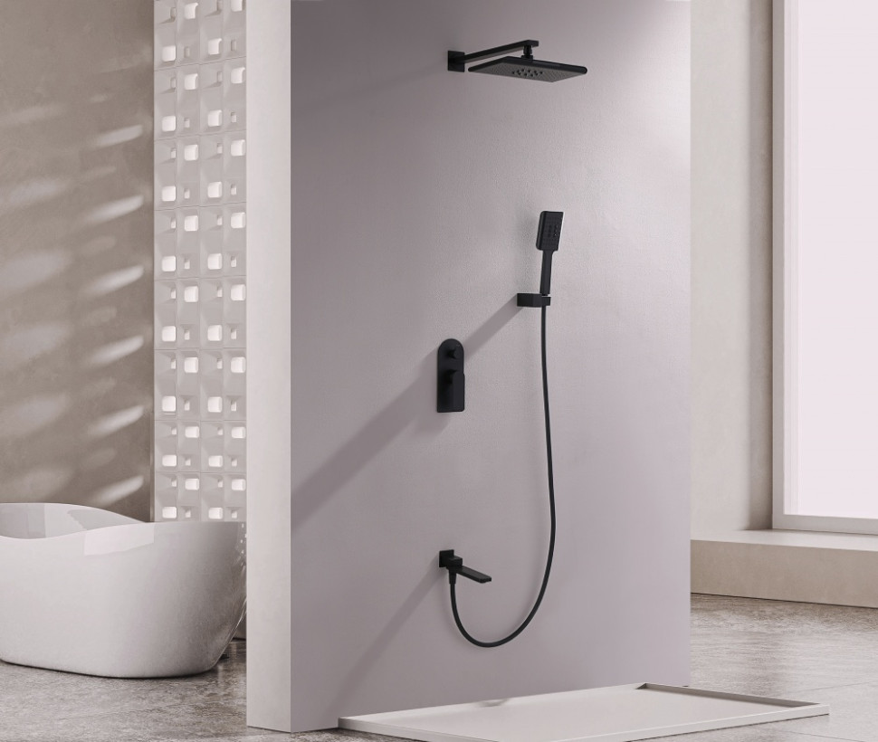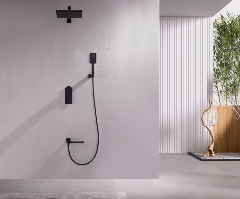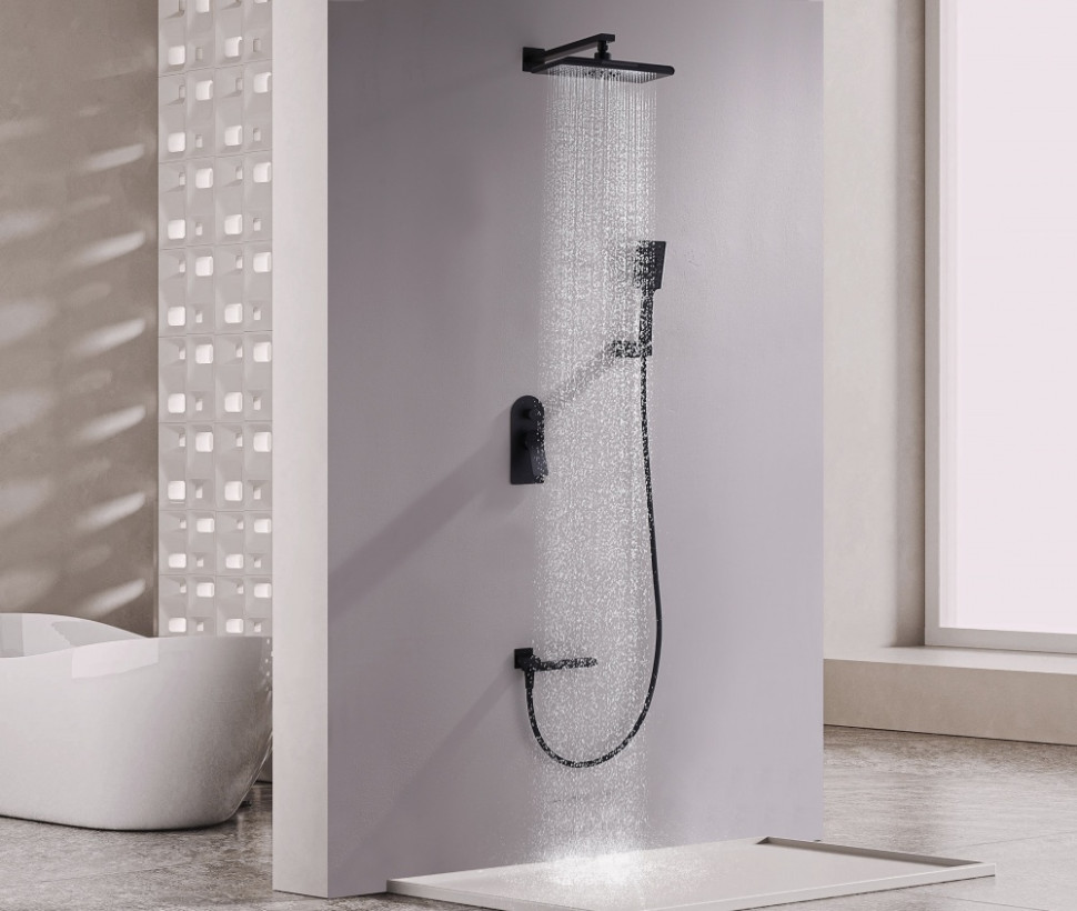 Душевая система скрытого монтажа Ganzer с тропическим душем и ручным душем GZ07165-C черный