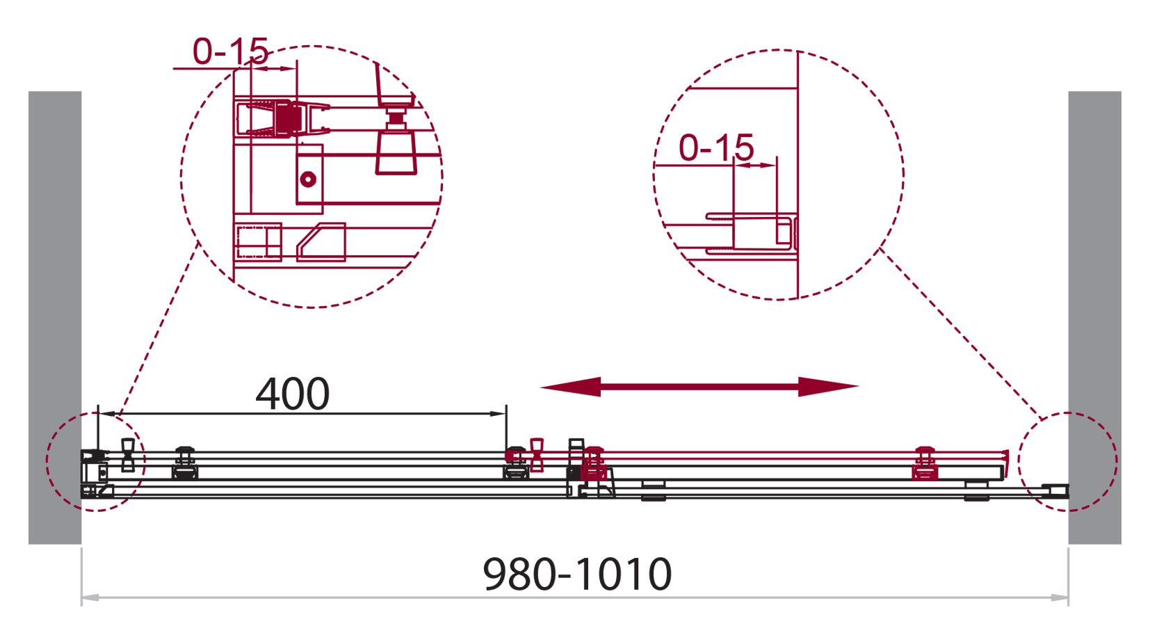 Несущий профиль из нержавеющей стали, меньшая подверженность механическим повреждениям по сравнению с аналогами из алюминия.  Конструктив ручек в стиле "минимализм". Закалённое стекло 8 мм