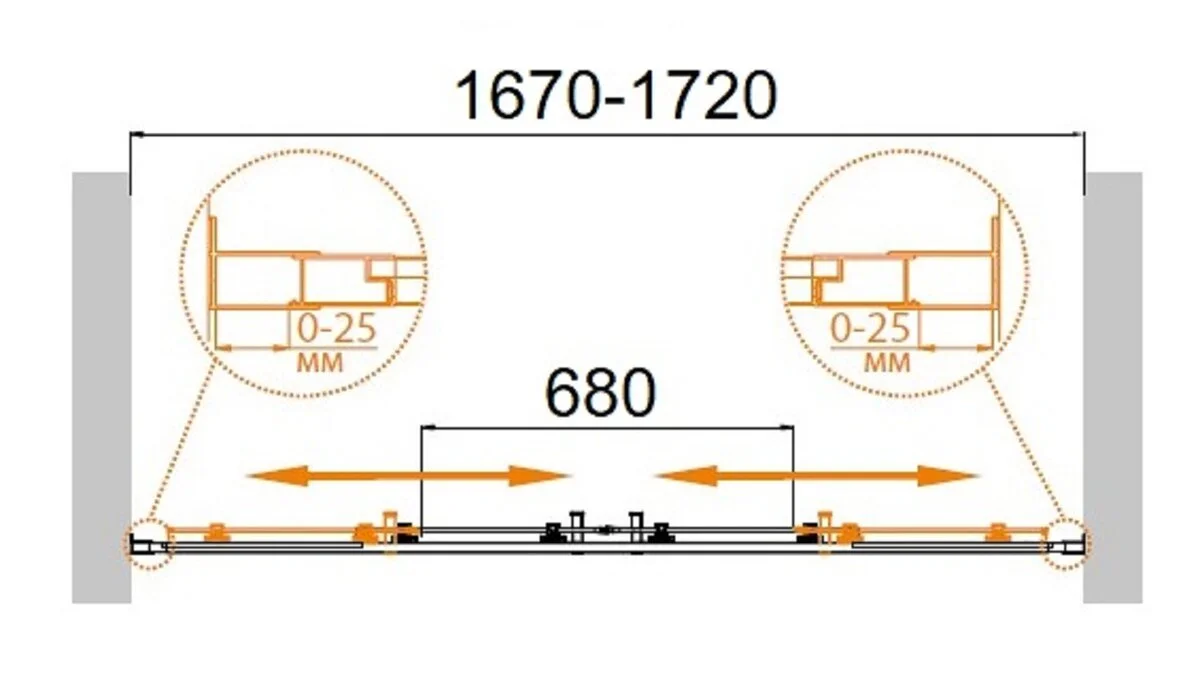 Душевая дверь в нишу Cezares MOLVENO-BF-2-170-C/P-Cr-IV, 170 см, стекло прозрачное антикальций/рифленое, профиль хром