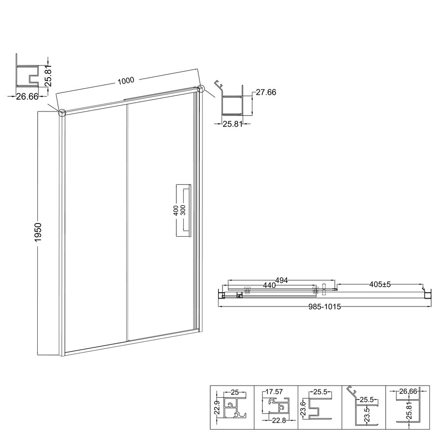 Дверь в нишу Niagara Nova NG-44-10ASG (100х195) раздвижная,золото сатин,стекло прозрачное,1 место купить по низкой цене в интернет-магазине «ГЕБОСАН»