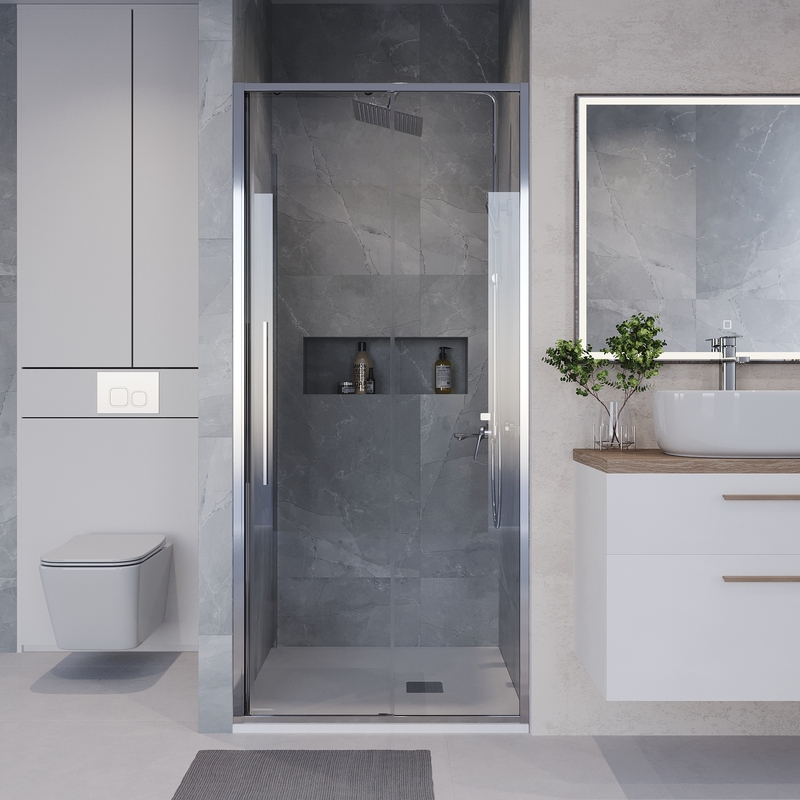 Дверь в нишу Niagara Nova NG-64-9A (90х195) хром,стекло прозрачное,дверь раздвижная,1 место купить по низкой цене в интернет-магазине «ГЕБОСАН»