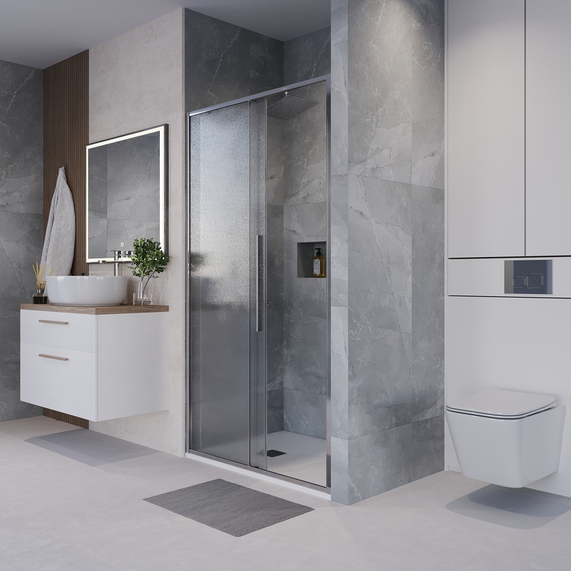 Дверь в нишу Niagara Nova NG-65-14CH (140х195) хром,стекло шиншилла,дверь раздвижная,1 место купить по низкой цене в интернет-магазине «ГЕБОСАН»
