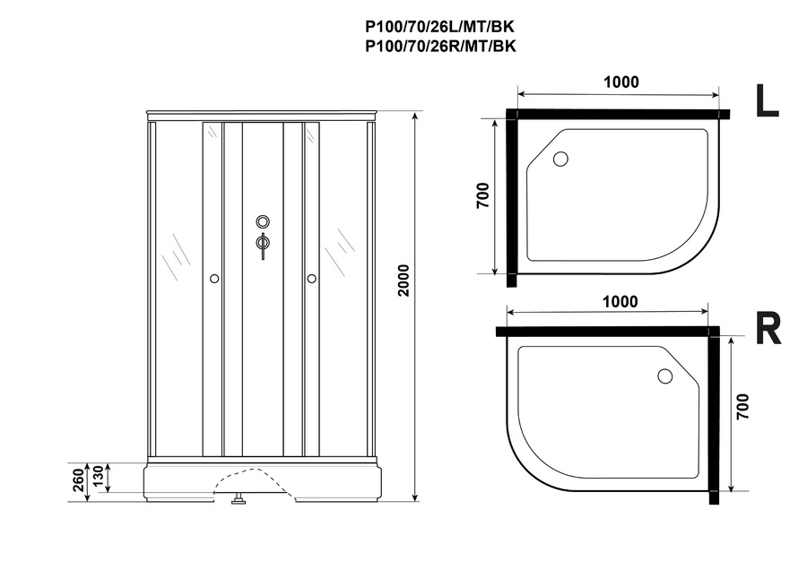 Все эти данные помогут в подборе Душевая кабина Niagara Promo P100/70/26R/MT/BK и транспортировке со склада.