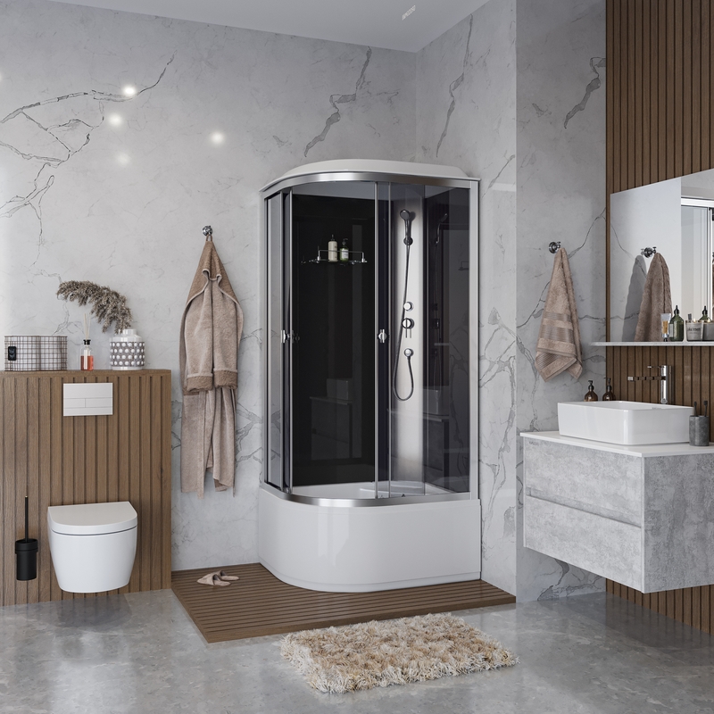 Душевая кабина Niagara Eco E90/70/40R/TN (90х70х215) высокий поддон(40см),стекло тонированное,4 места купить недорого в интернет-магазине «ГЕБОСАН»