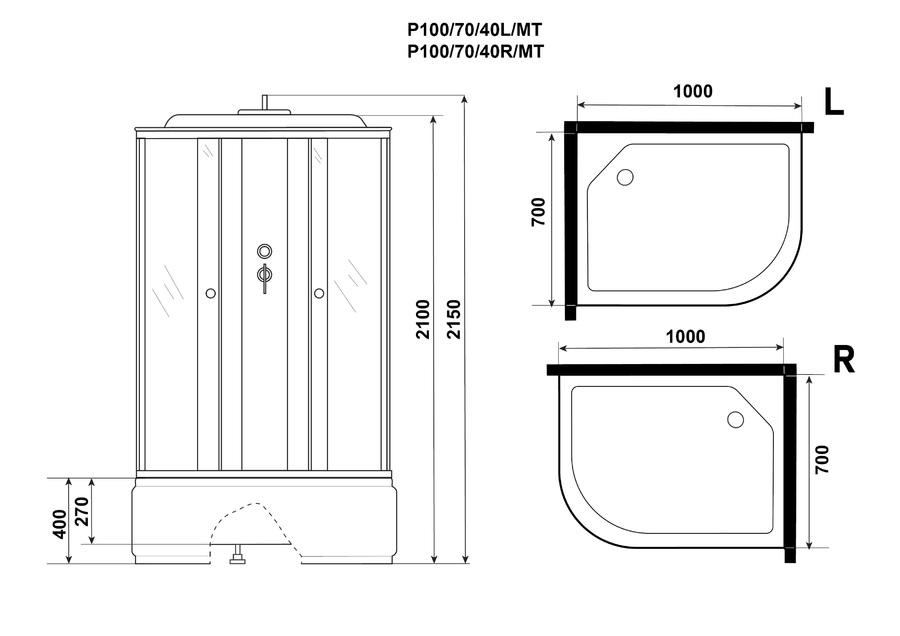 Габаритные размеры данной продукции 100 x 70 x 215 см позволяют использование в ванной комнате практически любого размера. Вам потребуется сделать предварительный замер остальных предметов ванной и подобрать нужное открытие двери душевой кабины, в данной модели ориентация двери левая.