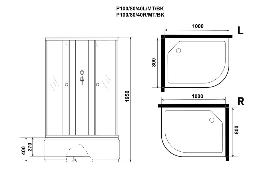 Все эти данные помогут в подборе Душевая кабина Niagara Promo P100/80/40R/MT/BK и транспортировке со склада.