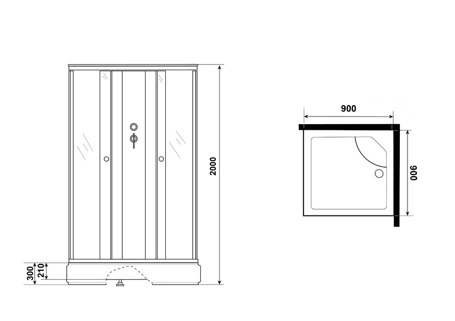 Габаритные размеры данной продукции 90 x 90 x 200 см позволяют использование в ванной комнате практически любого размера. Вам потребуется сделать предварительный замер остальных предметов ванной и подобрать нужное открытие двери душевой кабины, в данной модели ориентация двери универсальная.