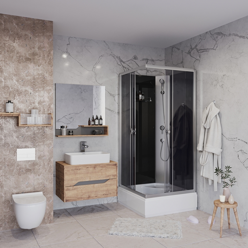 Душевая кабина Niagara Eco E90/26Q/TN/BK (90х90х195) средний поддон(30см),стекло тонированное,4 места купить недорого в интернет-магазине «ГЕБОСАН»