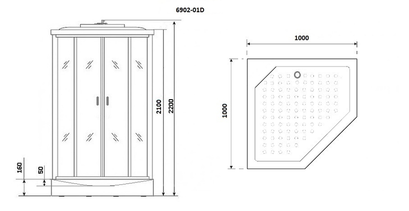 Габаритные размеры данной продукции 100 x 100 x 220 см позволяют использование в ванной комнате практически любого размера. Вам потребуется сделать предварительный замер остальных предметов ванной и подобрать нужное открытие двери душевой кабины, в данной модели ориентация двери универсальная.