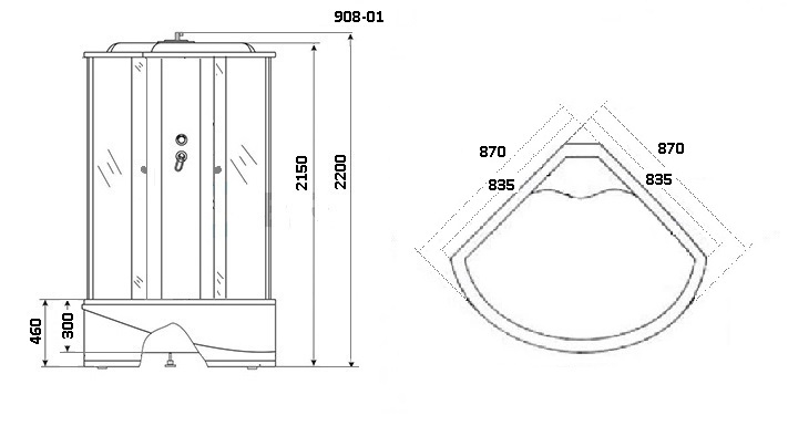 Габаритные размеры данной продукции 90 x 90 x 220 см позволяют использование в ванной комнате практически любого размера. Вам потребуется сделать предварительный замер остальных предметов ванной и подобрать нужное открытие двери душевой кабины, в данной модели ориентация двери универсальная.