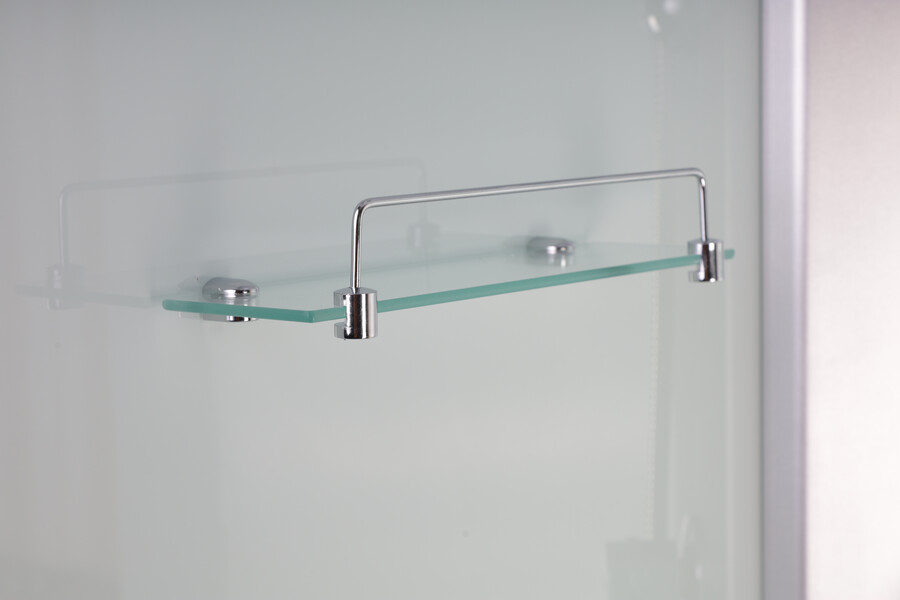 Для ванных принадлежностей есть полочка, которая пригодится для приема комфортного душа.