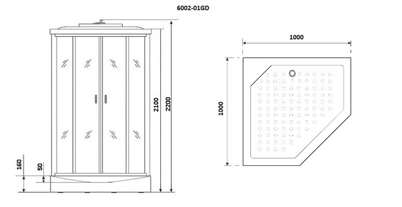 Габаритные размеры данной продукции 100 x 100 x 220 см позволяют использование в ванной комнате практически любого размера. Вам потребуется сделать предварительный замер остальных предметов ванной и подобрать нужное открытие двери душевой кабины, в данной модели ориентация двери универсальная.