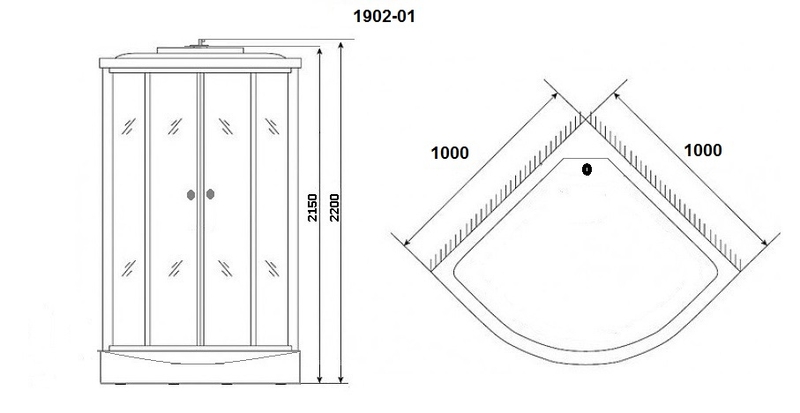 Габаритные размеры данной продукции 100 x 100 x 220 см позволяют использование в ванной комнате практически любого размера. Вам потребуется сделать предварительный замер остальных предметов ванной и подобрать нужное открытие двери душевой кабины, в данной модели ориентация двери универсальная.