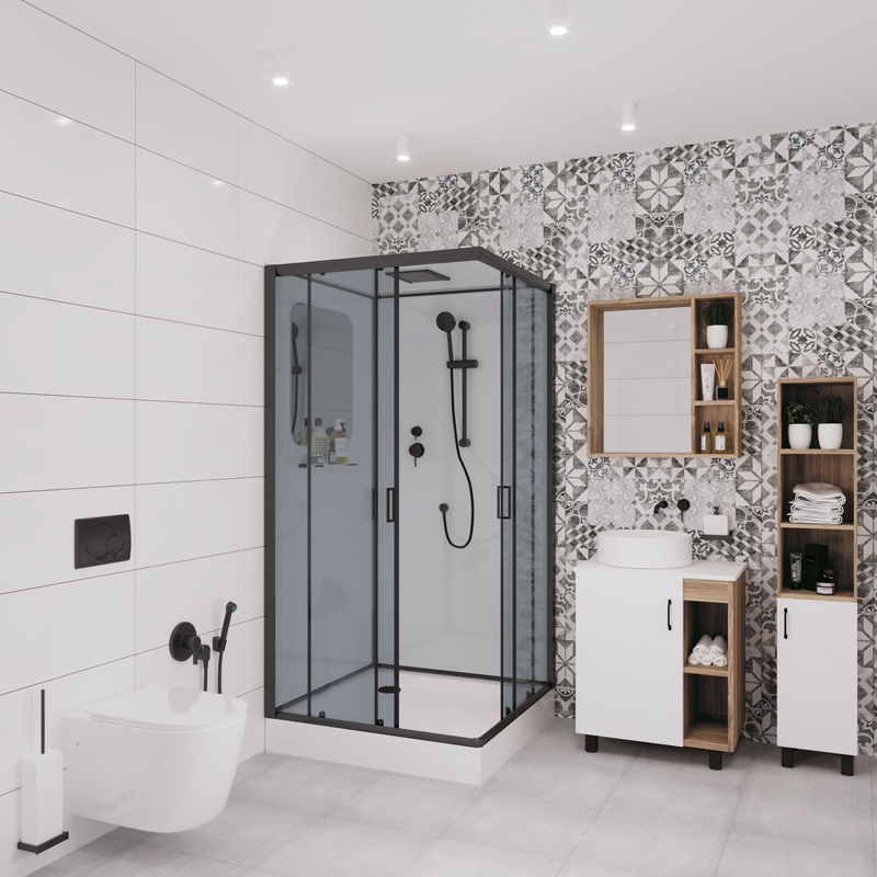 Душевая кабина Niagara Premium NG-6902-01Q BLACK (100х100х210) низкий поддон(16 см),черный,стекло тонированное,4 места купить недорого в интернет-магазине «ГЕБОСАН»