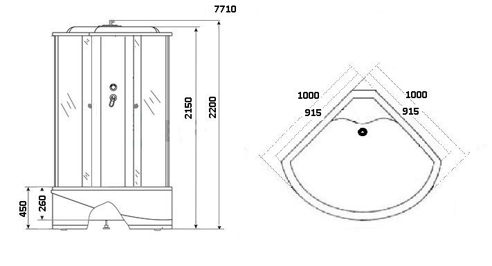 Габаритные размеры данной продукции 100 x 100 x 215 см позволяют использование в ванной комнате практически любого размера. Вам потребуется сделать предварительный замер остальных предметов ванной и подобрать нужное открытие двери душевой кабины, в данной модели ориентация двери универсальная.