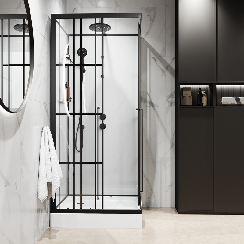 Душевая кабина Niagara Standart ST90/15QR/KL/BKT (90х90х225) низкий поддон(15см),черный,стекло прозрачное,3 места купить недорого в интернет-магазине «ГЕБОСАН»