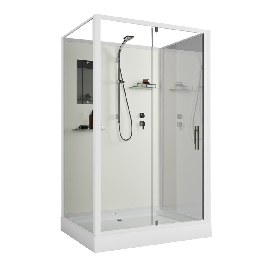 Душевая кабина Niagara Standart ST120/90/15Q/BK (120х90х200) прямоугольник,поддон 15см,распашная,проф.белый,без крыши,3 места купить недорого в интернет-магазине «ГЕБОСАН»
