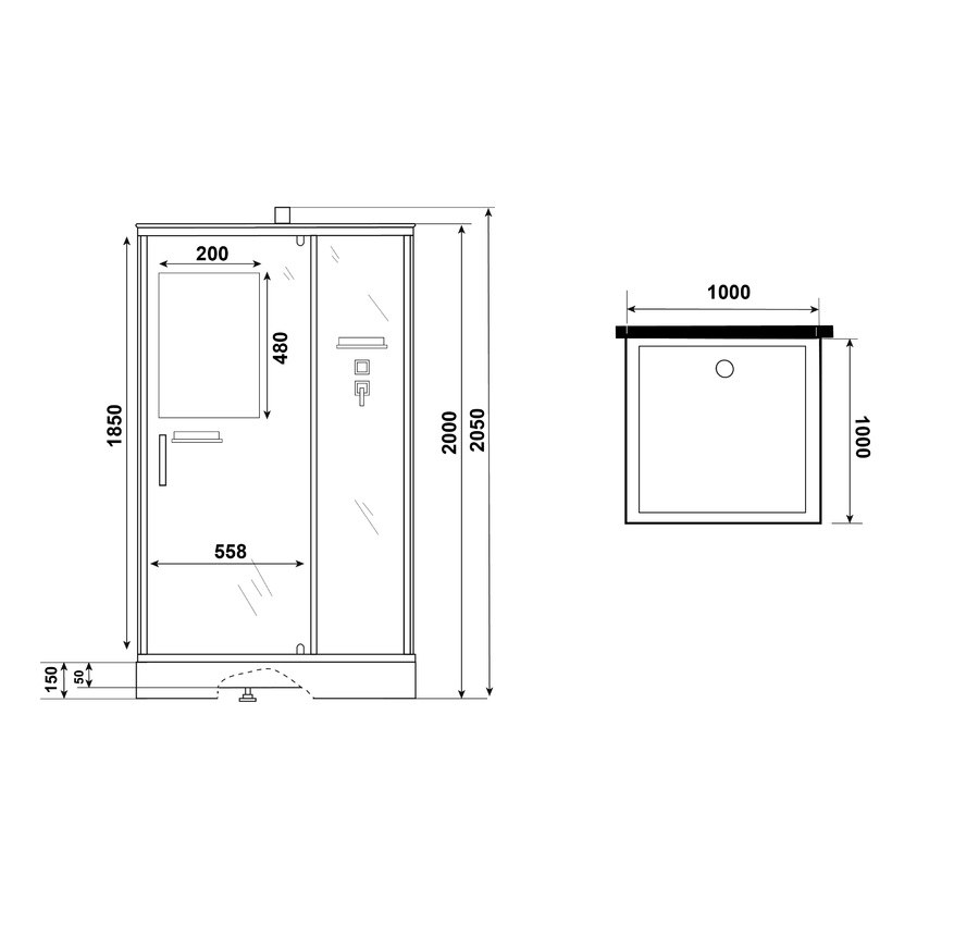 Габаритные размеры данной продукции 100 x 100 x 200 см позволяют использование в ванной комнате практически любого размера. Вам потребуется сделать предварительный замер остальных предметов ванной и подобрать нужное открытие двери душевой кабины, в данной модели ориентация двери универсальная.