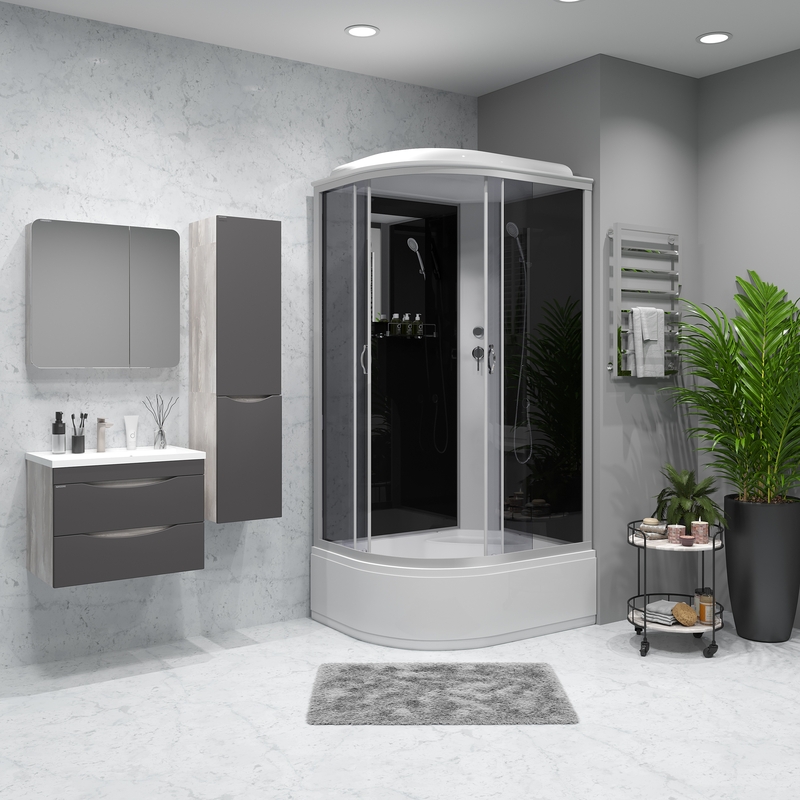 Габаритные размеры данной продукции 120 x 80 x 215 см позволяют использование в ванной комнате практически любого размера. Вам потребуется сделать предварительный замер остальных предметов ванной и подобрать нужное открытие двери душевой кабины, в данной модели ориентация двери правая.